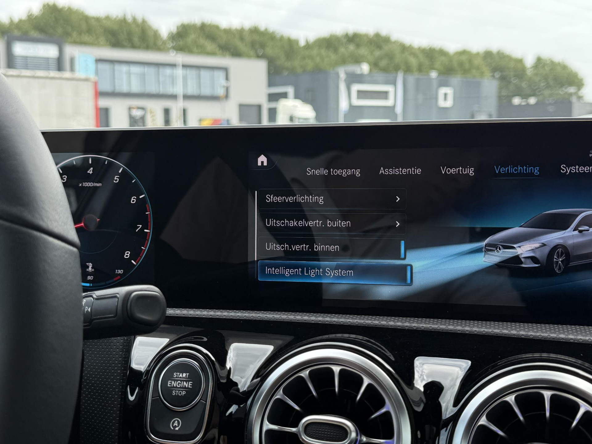 De volledige optielijst van de auto ziet er als volgt uit: 16U Smartphone-integratie Apple CarPlay 17U Smartphone-integratie Android Auto 213 Parameterstuurinrichting/Variostuurinrichting 218 Achteruitrijcamera 234 Dodehoekassistent 235 Actieve parkeerassistent 243 Actieve spoorassistent (camera) 249 Binnen- en buitenspiegel automatisch dimmend 258 Botsingswaarschuwing met actieve remingreep FCW-stop 270 Gps-antenne 273 Uitstapwaarschuwing 286 Bagagenetten aan rugleuningen bestuurders- en bijrijdersstoel 287 Doorlaadmogelijkheid 294 Kneebag 2U5 Gespoten dorpelverbreder 310 Dubbele bekerhouder 345 Regensensor 355 Voorbereiding voor inbouw navigatie naderhand 365 Navigatie vanaf harde schijf 367 Voorbereiding Live Traffic Information 3U6 Landenset headunit voor ECE/ROW 400 Armsteun achter 413 Panoramaschuifdak 428 Stuurschakeltoetsen/stuurschakelpaddles - gespoten 429 7-traps automatische transmissie met dubbele koppeling 440 Tempomat 446 Alleen touchpad 458 Combi-instrumentdisplay 475 Bandenspanningscontrole (RDK) 500 Buitenspiegels elektrisch inklapbaar 502 Meerjarige gratis updates kaartgegevens 504 Snelheidslimietherkenning 51U Interieurhemelbekleding stof zwart 543 Zonneklep met extra functie 549 Connect 20 HIGH (NTG6) 581 Automatische airconditioning 628 Automatische in-/uitschakeling grootlicht plus (IHC+) 642 Koplampen led dynamisch rechtsrijdend verkeer - Multibeam 677 Avantgarde-/standaardonderstel 6P5 Stuurcode verkoop 70B Veiligheidsvest - bestuurder 73B Vak met rolscherm gesloten 79B Voorbereiding digitale radiostandaard DAB/DMB 840 Glas donker getint 853 Sound system midline 859 Centraal display Widescreen 873 Stoelverwarming voor bestuurder en bijrijder 877 Sfeerverlichting 889 KEYLESS GO 897 Draadloos telefoon opladen voor 927 Uitlaatgasreiniging EURO 6 techniek B59 Keuzeschakelaar rijprogramma (Agility Select) P44 Inparkeerpakket P49 Spiegelpakket P55 Nightpakket P59 Urban-/Progressive-pakket PBF MBUX-navigatie plus