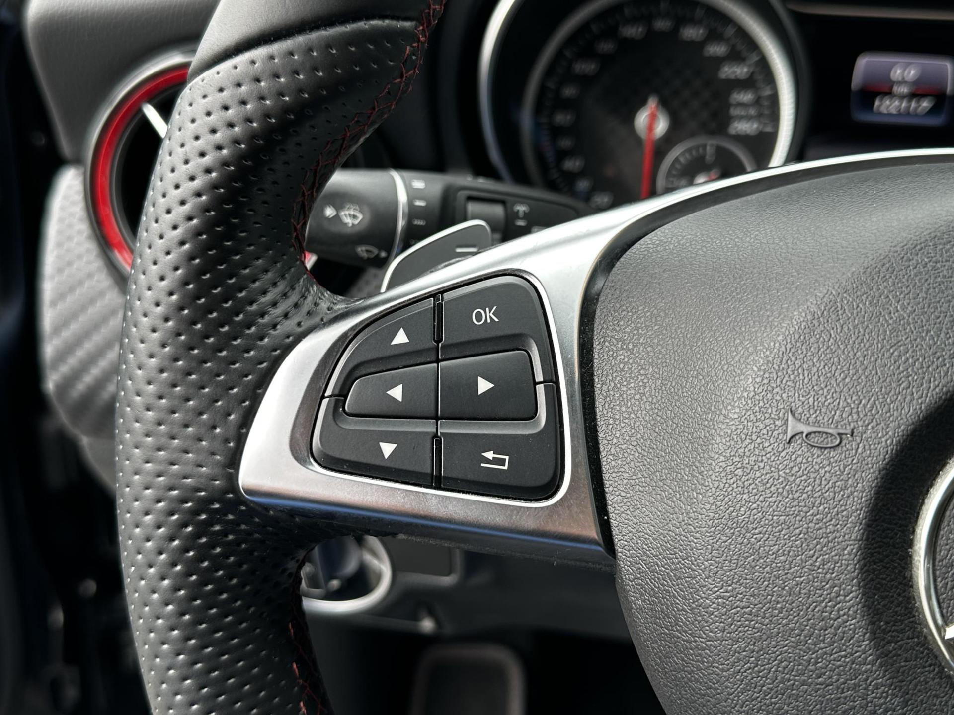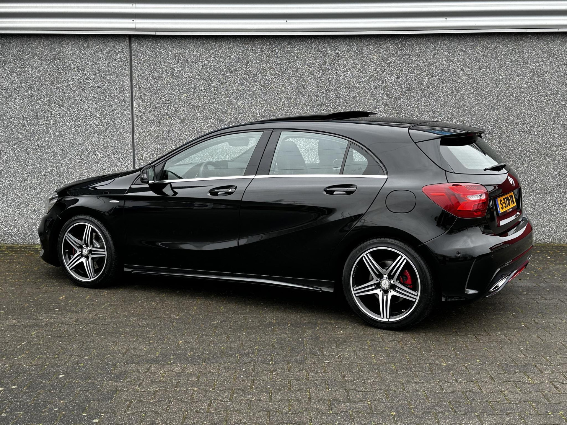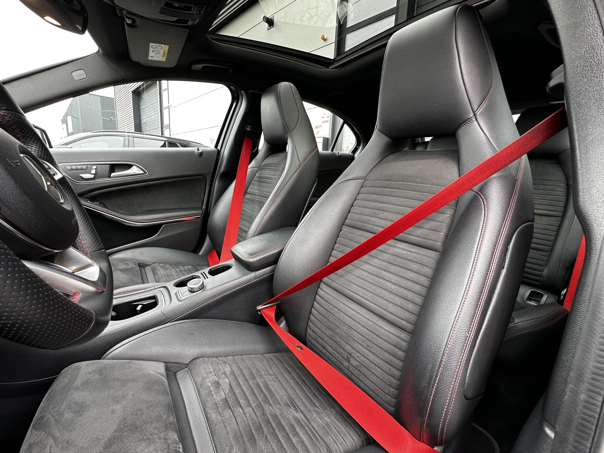 De volledige optielijst van de auto ziet er als volgt uit: 218 Achteruitrijcamera 234 Dodehoekassistent 235 Actieve parkeerassistent 242 Bestuurdersstoel rechts elektrisch verstelbaar met memory 249 Binnen- en buitenspiegel automatisch dimmend 275 Memorypakket (bestuurdersstoel, stuurkolom en spiegel) 345 Regensensor 351 Ecall-noodoproepsysteem 357 SD-kaartnavigatie 400 Armsteun achter 413 Panoramaschuifdak 428 Stuurschakeltoetsen/stuurschakelpaddles - gespoten 429 7-traps automatische transmissie met dubbele koppeling 440 Tempomat 442 Multifunctioneel stuurwiel (12 toetsen) 475 Bandenspanningscontrole (RDK) 486 Sportonderstel 4U7 Zekering tegen spanningsdaling start-stopsysteem 500 Buitenspiegels elektrisch inklapbaar 51U Interieurhemelbekleding stof zwart 580 Airco 632 Koplampen led statisch rechtsrijdend verkeer 772 AMG-styling - frontspoiler, dorpelverbreders 774 18 inch-5-spaaks AMG-velgen rondom 810 Sound system Premium HarmanKardon 818 Single cd-speler 857 Centraal display 873 Stoelverwarming voor bestuurder en bijrijder 875 Ruitersproeierinstallatie, verwarmd 877 Sfeerverlichting 950 AMG-line B03 Directe start/ECO start-stopsysteem B59 Keuzeschakelaar rijprogramma (Agility Select) P49 Spiegelpakket P84 Sport Edition U22 Lendensteunverstelling voor U25 Instaplijsten verlicht U59 Zitcomfortpakket