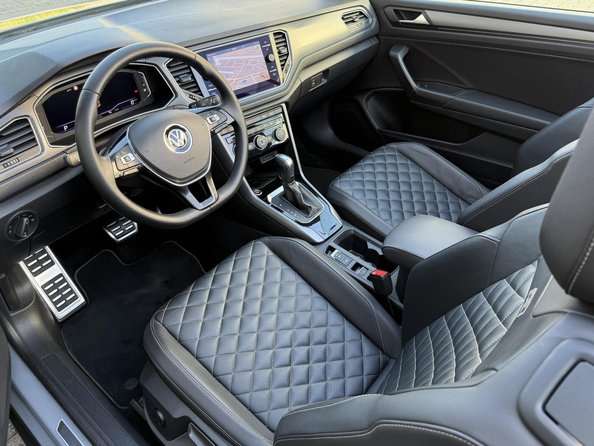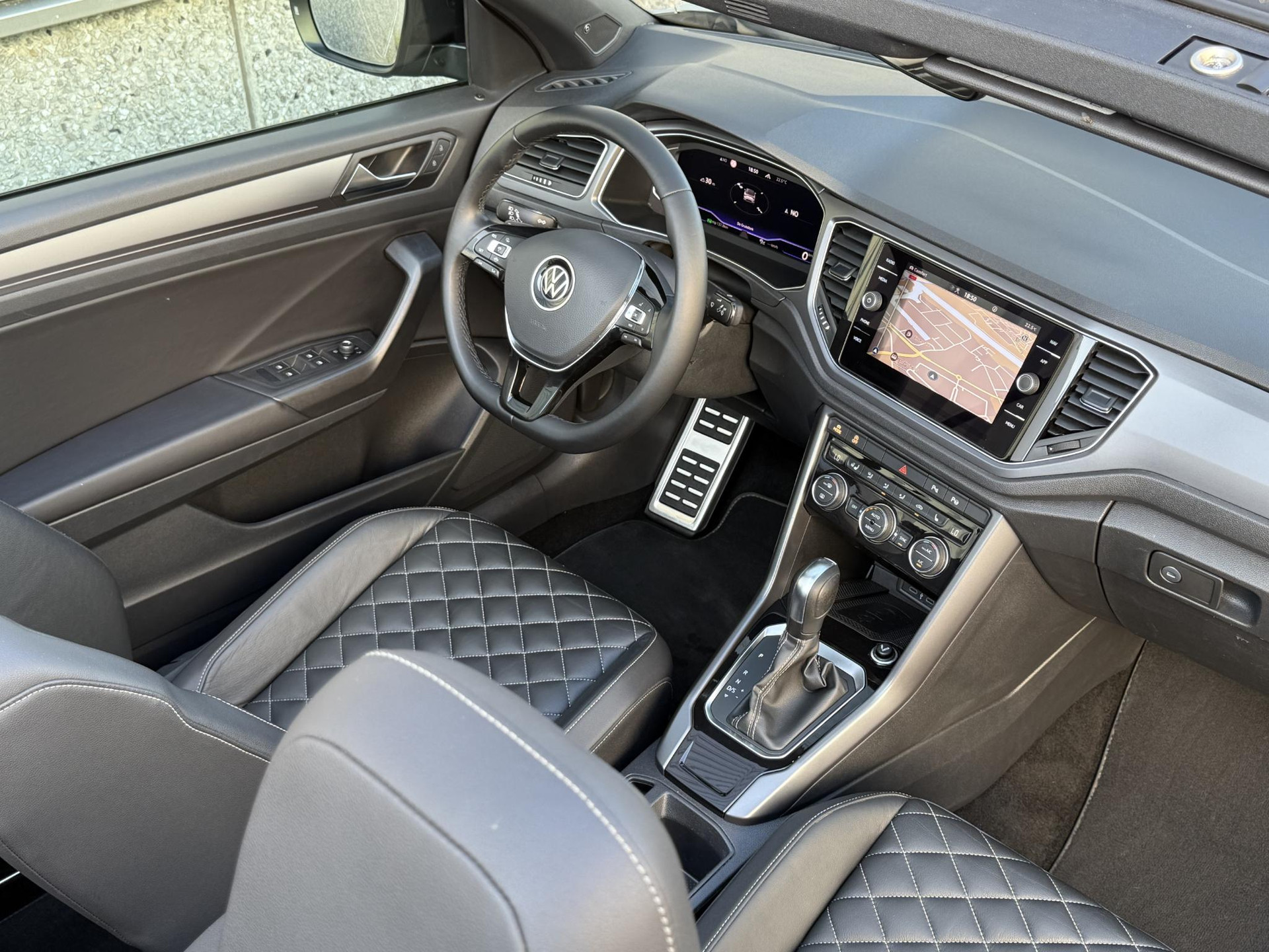 Prachtige en goed onderhouden Volkswagen T-Roc Cabrio. Deze Volkswagen is uitgevoerd in de kleur Nardogrijs metallic in combinatie met een zwart lederen interieur. Deze T-Roc is in een zeer goede staat, is schadevrij en heeft een originele kilometerstand.