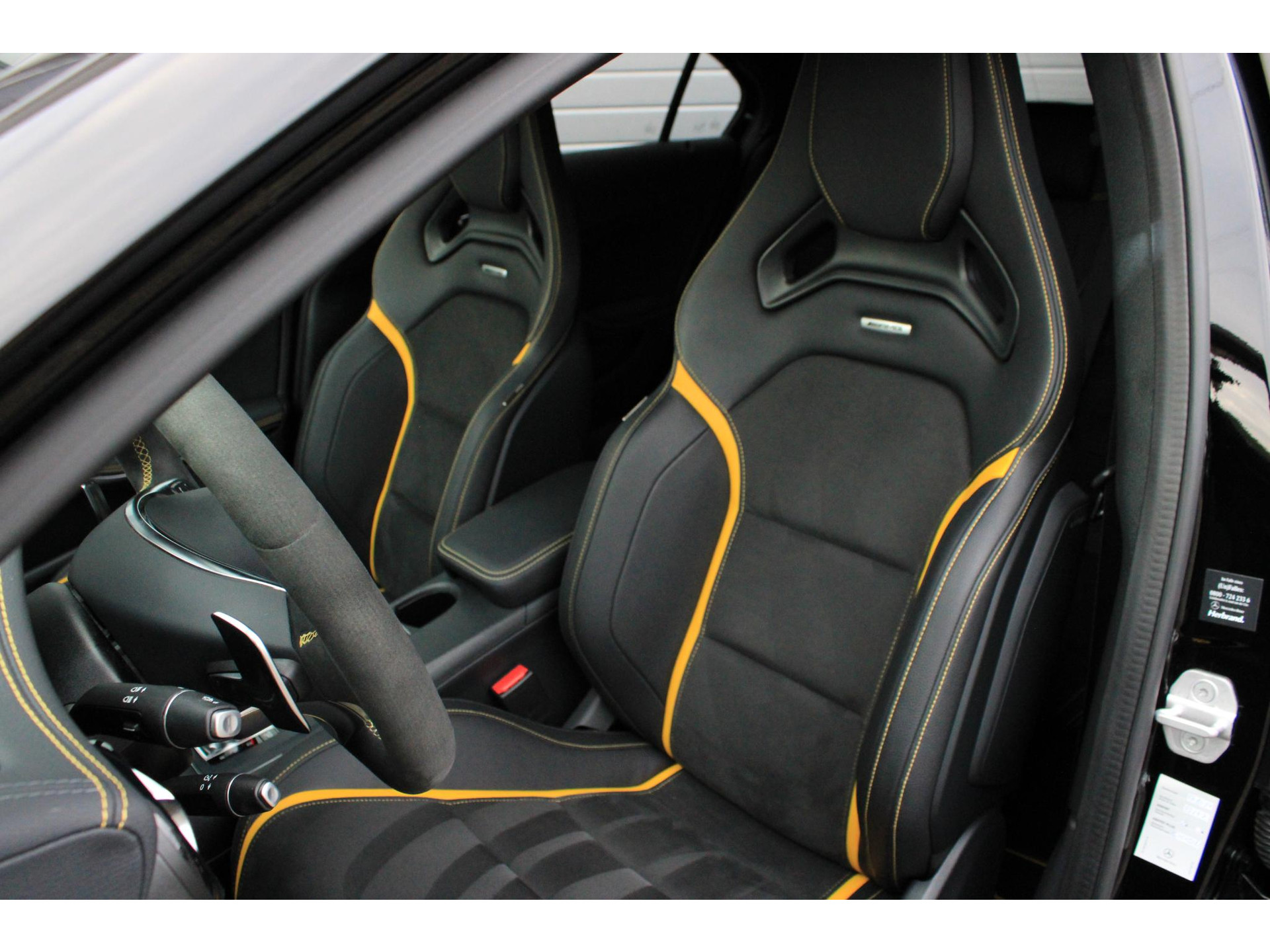Prachtige en goed onderhouden Mercedes-AMG A45 Yellow Night Edition. Deze AMG is uitgevoerd in de kleur Zwart , in combinatie met een Gele accenten. Deze AMG is in een goede staat, is schadevrij en heeft een originele kilometerstand, en is bovendien afkomstig van de eerste eigenaar.