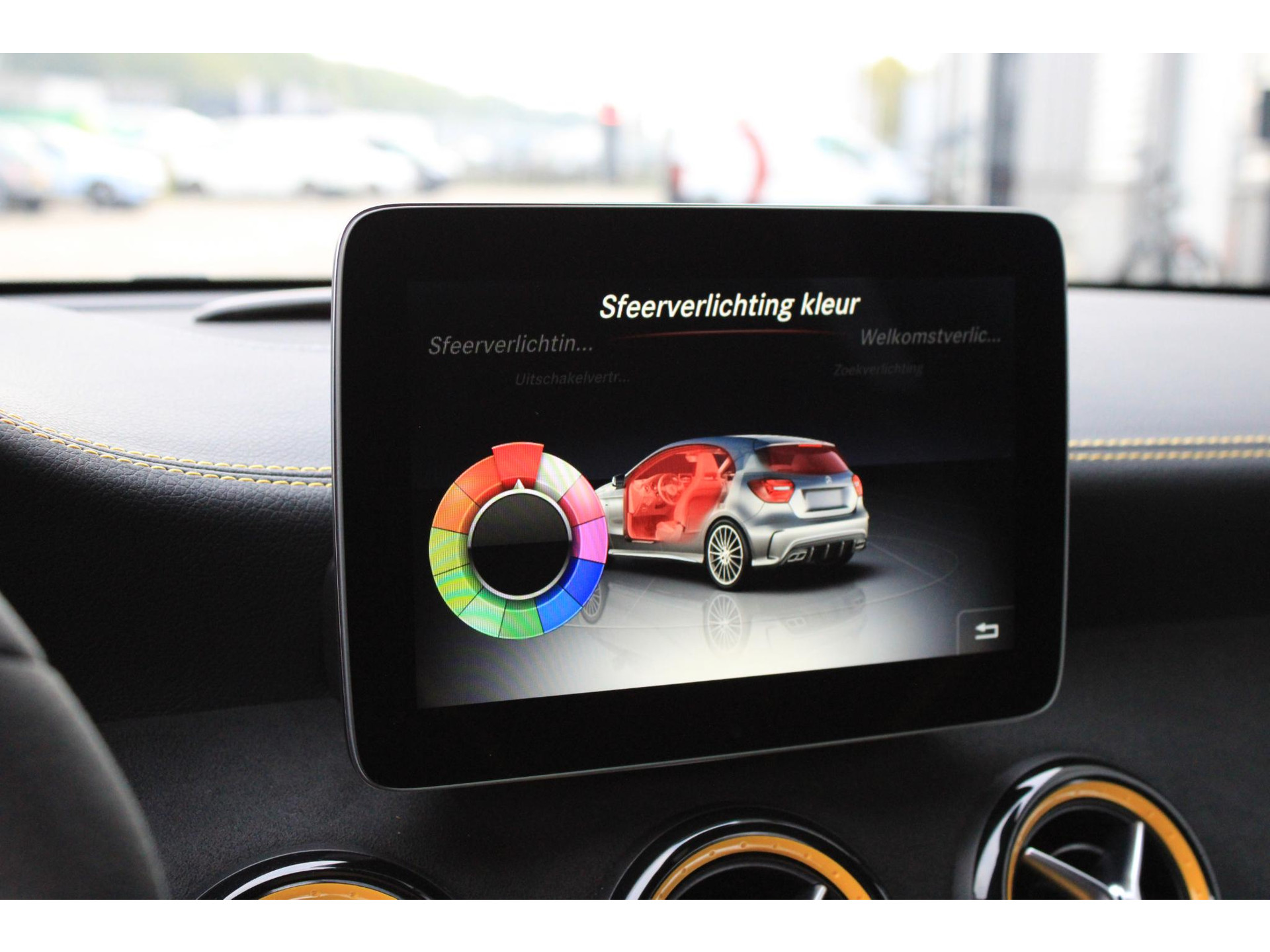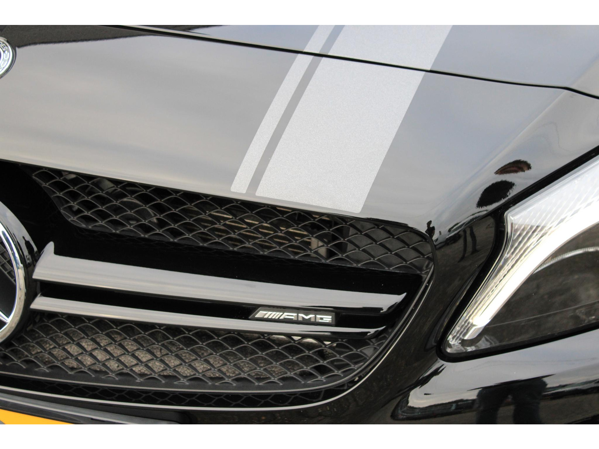 De volledige optielijst van deze AMG luidt als volgt: 16U Smartphone-integratie Apple CarPlay 17U Smartphone-integratie Android Auto 218 Achteruitrijcamera 235 Actieve parkeerassistent 242 Bestuurdersstoel rechts elektrisch verstelbaar met memory 258 Botsingswaarschuwing met actieve remingreep FCW-stop 275 Memorypakket (bestuurdersstoel, stuurkolom en spiegel) 345 Regensensor 367 Voorbereiding Live Traffic Information 429 7-traps automatische transmissie met dubbele koppeling 440 Tempomat 475 Bandenspanningscontrole (RDK) 486 Sportonderstel 513 Verkeersbordenherkenning 51U Interieurhemelbekleding stof zwart 531 COMAND APS NTG5/NTG5.5 538 Bestuurderscamera mono 543 Zonneklep met extra functie 551 Diefstal-/inbraakalarminstallatie basis (EDW) 555 AMG Performance-stoel 581 Automatische airconditioning 608 Automatische in-/uitschakeling grootlicht (IHC) 632 Koplampen led statisch rechtsrijdend verkeer 772 AMG-styling - frontspoiler, dorpelverbreders 810 Sound system Premium 815 Single dvd-speler 840 Glas donker getint 873 Stoelverwarming voor bestuurder en bijrijder 875 Ruitersproeierinstallatie, verwarmd 877 Sfeerverlichting 882 Sensoren en sirene diefstal-/inbraakalarminstallatie 893 KEYLESS START B03 Directe start/ECO start-stopsysteem B09 Aircocompressor met magneetkoppeling B26 AMG-aerodynamicapakket B59 Keuzeschakelaar rijprogramma (Agility Select) H92 Sierdelen - microvezel zwart AMG L6G AMG-stuurwiel microvezel P54 Diefstalbeveiligingspakket P60 AMG-nightpakket exterieur P74 Speciaal model Yellow Night Edition AMG RVK 19 inch multispaaks AMG-velgen 'rondom' U21 Sportuitlaatsysteem U25 Instaplijsten verlicht U47 Spoilerrand AMG U62 Licht- en zichtpakket