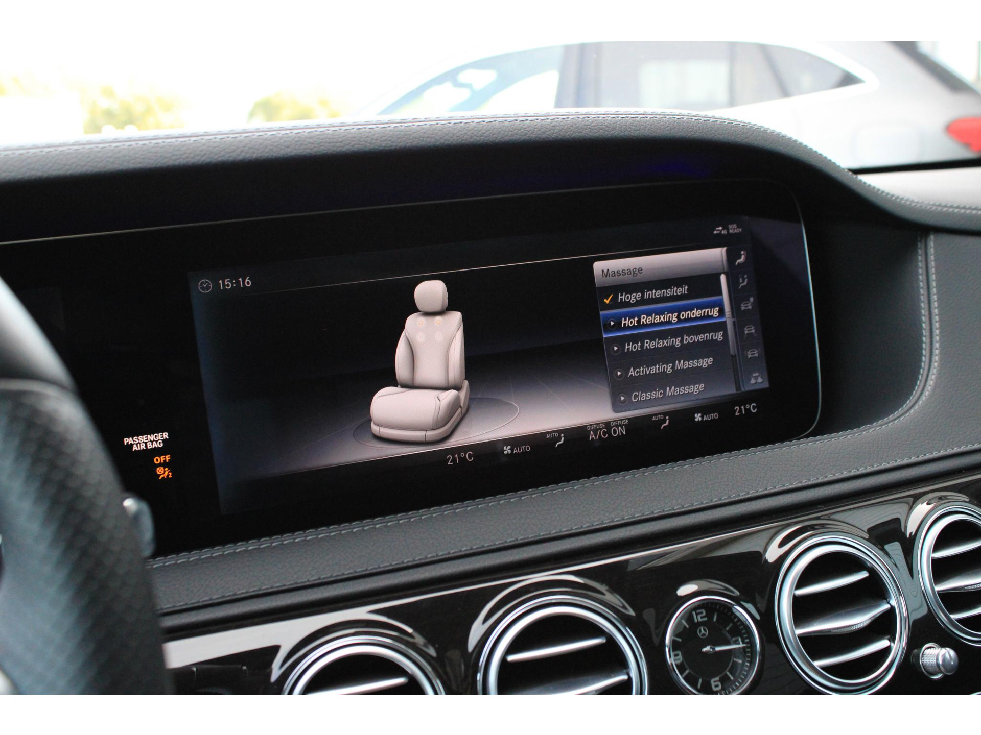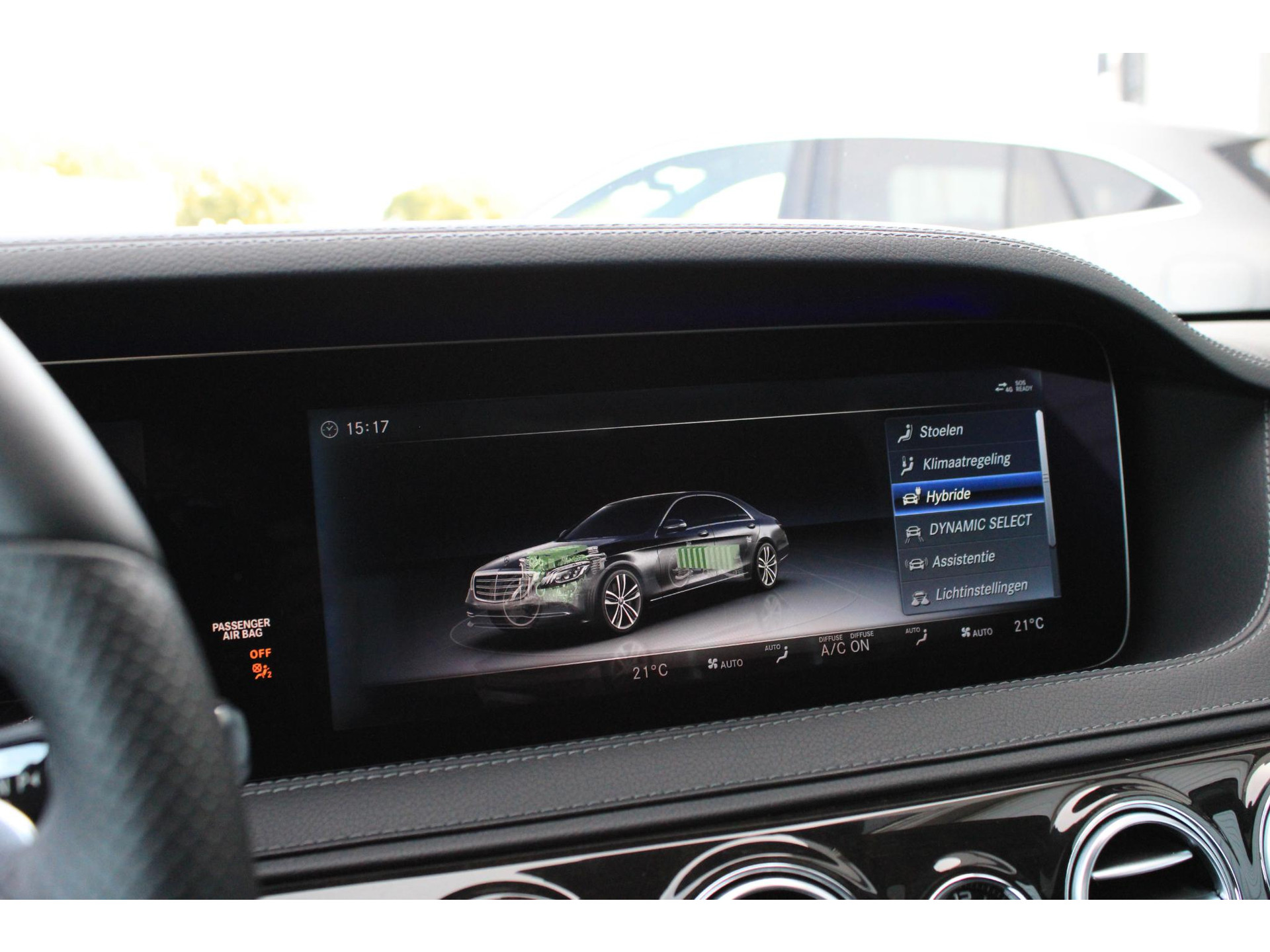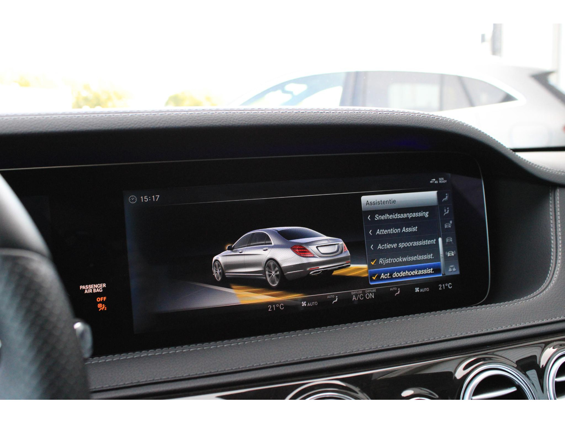 De volledige optielijst van de auto ziet er als volgt uit: 14U Integratiepakket smartphone 16U Smartphone-integratie Apple CarPlay 17U Smartphone-integratie Android Auto 228 Extra verwarming 233 Afstandspilot plus (DISTRONIC PLUS) 235 Actieve parkeerassistent 23P Rijpakket 249 Binnen- en buitenspiegel automatisch dimmend 260 Geen typeaanduiding op kofferdeksel 266 Distronic Plus zijdelingse ondersteuning (DTR+Q) 275 Memorypakket (bestuurdersstoel, stuurkolom en spiegel) 282 Doorlaadmogelijkheid via armsteun achter 310 Dubbele bekerhouder 367 Voorbereiding Live Traffic Information 401 Stoelverwarming/-ventilatie voor 413 Panoramaschuifdak 421 Automatische negentraps transmissie 432 Rijdynamische stoel links en rechts links 436 Comforthoofdsteunen bestuurder en bijrijder 448 Touchpad met draai-/drukknop 463 Vooraanzicht (head-up display) 475 Bandenspanningscontrole (RDK) 501 360°-camera 503 Op afstand bediend parkeren 513 Verkeersbordenherkenning 51U Interieurhemelbekleding stof zwart 531 COMAND APS NTG5/NTG5.5 537 Digitale-radiostandaard DAB (Digital Audio Broadcast) 543 Zonneklep met extra functie 546 Automatische snelheidsregeling 581 Automatische airconditioning 628 Automatische in-/uitschakeling grootlicht plus (IHC+) 642 Koplampen led dynamisch rechtsrijdend verkeer 6P5 Stuurcode verkoop 70B Veiligheidsvest - bestuurder 729 Sierdelen - populierenhout 772 AMG-styling - frontspoiler, dorpelverbreders 776 Verbrede wielkasten 810 Sound system Premium 840 Glas donker getint 866 Voorbereiding voor entertainment achter 871 Handsfree access 874 Magic Vision Control inclusief ruitensproeierinstallatie, verwarmd 881 Comfortsluiting kofferdeksel 889 KEYLESS GO 891 Sfeerverlichting premium 896 Toegang tot voertuig en authenticatie via smartphone 899 Draadloos opladen telefoon voor en antenne 89P Aansturingscode voor MBVD project MB Rent 8U0 Verwarmde ruitensproeiervloeistofreservoir 902 Comfortstoelverwarming voor 927 Uitlaatgasreiniging EURO 6 techniek 950 AMG-line