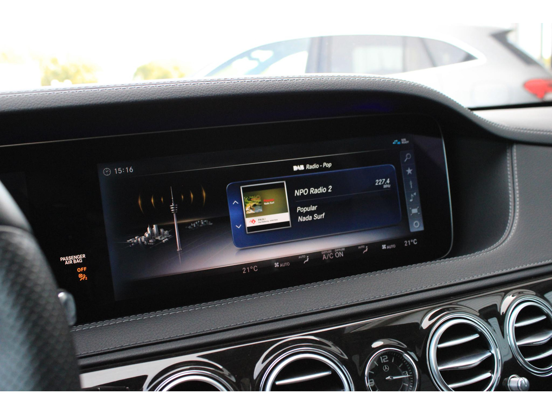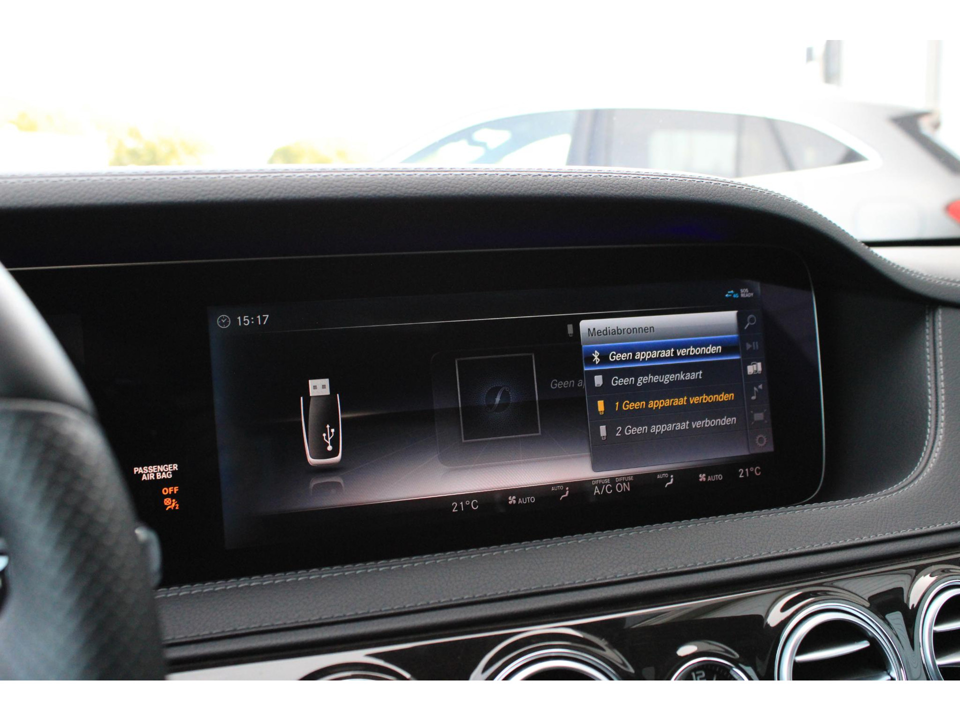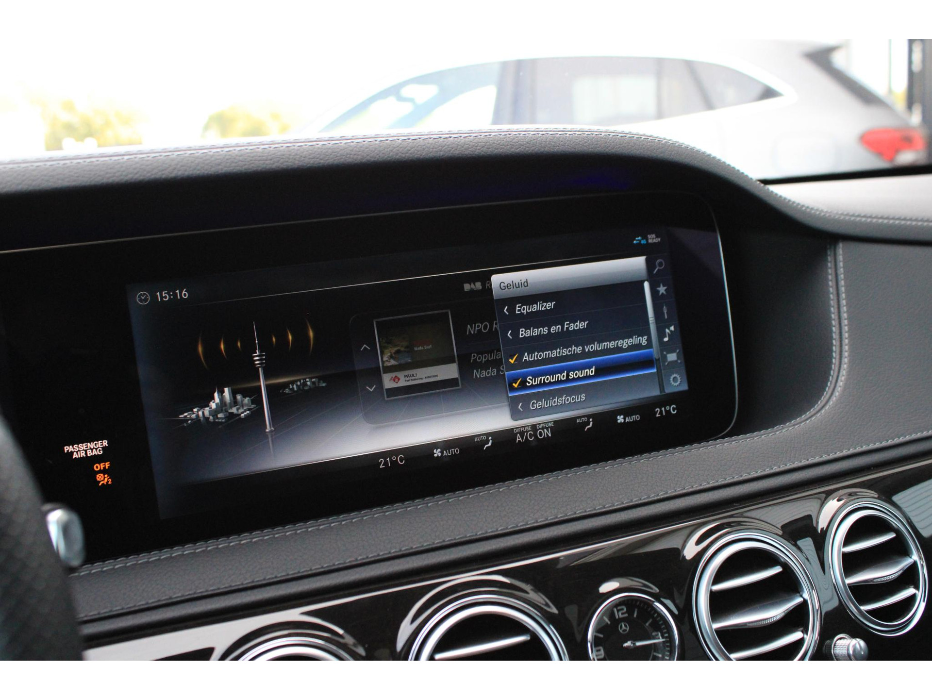 De volledige optielijst van de auto ziet er als volgt uit: 14U Integratiepakket smartphone 16U Smartphone-integratie Apple CarPlay 17U Smartphone-integratie Android Auto 228 Extra verwarming 233 Afstandspilot plus (DISTRONIC PLUS) 235 Actieve parkeerassistent 23P Rijpakket 249 Binnen- en buitenspiegel automatisch dimmend 260 Geen typeaanduiding op kofferdeksel 266 Distronic Plus zijdelingse ondersteuning (DTR+Q) 275 Memorypakket (bestuurdersstoel, stuurkolom en spiegel) 282 Doorlaadmogelijkheid via armsteun achter 310 Dubbele bekerhouder 367 Voorbereiding Live Traffic Information 401 Stoelverwarming/-ventilatie voor 413 Panoramaschuifdak 421 Automatische negentraps transmissie 432 Rijdynamische stoel links en rechts links 436 Comforthoofdsteunen bestuurder en bijrijder 448 Touchpad met draai-/drukknop 463 Vooraanzicht (head-up display) 475 Bandenspanningscontrole (RDK) 501 360°-camera 503 Op afstand bediend parkeren 513 Verkeersbordenherkenning 51U Interieurhemelbekleding stof zwart 531 COMAND APS NTG5/NTG5.5 537 Digitale-radiostandaard DAB (Digital Audio Broadcast) 543 Zonneklep met extra functie 546 Automatische snelheidsregeling 581 Automatische airconditioning 628 Automatische in-/uitschakeling grootlicht plus (IHC+) 642 Koplampen led dynamisch rechtsrijdend verkeer 6P5 Stuurcode verkoop 70B Veiligheidsvest - bestuurder 729 Sierdelen - populierenhout 772 AMG-styling - frontspoiler, dorpelverbreders 776 Verbrede wielkasten 810 Sound system Premium 840 Glas donker getint 866 Voorbereiding voor entertainment achter 871 Handsfree access 874 Magic Vision Control inclusief ruitensproeierinstallatie, verwarmd 881 Comfortsluiting kofferdeksel 889 KEYLESS GO 891 Sfeerverlichting premium 896 Toegang tot voertuig en authenticatie via smartphone 899 Draadloos opladen telefoon voor en antenne 89P Aansturingscode voor MBVD project MB Rent 8U0 Verwarmde ruitensproeiervloeistofreservoir 902 Comfortstoelverwarming voor 927 Uitlaatgasreiniging EURO 6 techniek 950 AMG-line