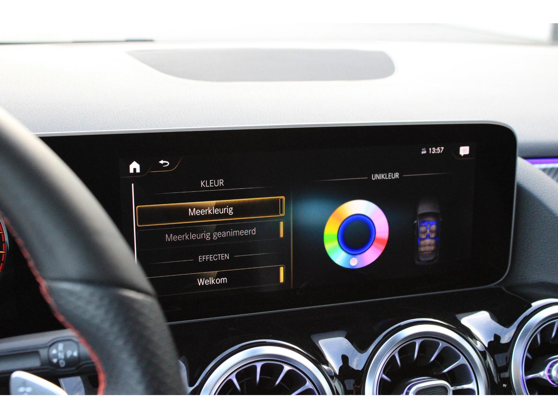 De volledige optielijst van de auto ziet er als volgt uit: 213 Parameterstuurinrichting/Variostuurinrichting 218 Achteruitrijcamera 235 Actieve parkeerassistent 243 Actieve spoorassistent (camera) 249 Binnen- en buitenspiegel automatisch dimmend 258 Botsingswaarschuwing met actieve remingreep FCW-stop 286 Bagagenetten aan rugleuningen bestuurders- en bijrijdersstoel 287 Doorlaadmogelijkheid 294 Kneebag 2U8 Koudemiddel alternatief 310 Dubbele bekerhouder 345 Regensensor 365 Navigatie vanaf harde schijf 367 Voorbereiding Live Traffic Information 3U6 Landenset headunit voor ECE/ROW 400 Armsteun achter 413 Panoramaschuifdak 429 7-traps automatische transmissie met dubbele koppeling 431 Stuurwieltoetsen/schakelpaddles - gegalvaniseerd 440 Tempomat 446 Alleen touchpad 458 Combi-instrumentdisplay S 475 Bandenspanningscontrole (RDK) 500 Buitenspiegels elektrisch inklapbaar 502 Meerjarige gratis updates kaartgegevens 504 Snelheidslimietherkenning 51B Rating landenset EURO-NCAP 51U Interieurhemelbekleding stof zwart 543 Zonneklep met extra functie 549 Connect 20 HIGH (NTG6) 581 Automatische airconditioning 598 Benzinepartikelfilter (OPF) met sensoren 632 Koplampen led statisch rechtsrijdend verkeer 677 Avantgarde-/standaardonderstel 70B Veiligheidsvest - bestuurder 73B Vak met rolscherm gesloten 772 AMG-styling - frontspoiler, dorpelverbreders 79B Voorbereiding digitale radiostandaard DAB/DMB 840 Glas donker getint 853 Sound system midline 859 Centraal display maat M 871 Handsfree access 873 Stoelverwarming voor bestuurder en bijrijder 877 Sfeerverlichting 889 KEYLESS GO 890 Automatische achterklep 8U8 i-Size-Marking (Isofix-opvolger) 936 Cilinderuitschakeling 942 Laadruimte-/bagageruimtepakket 950 AMG-line B51 TIREFIT B59 Keuzeschakelaar rijprogramma (Agility Select) FW Limousine GA Automatische transmissie H62 Sierdelen - kunststof IMD carbonlook C6 (2B84) P17 KEYLESS GO-pakket P44 Inparkeerpakket P49 Spiegelpakket P55 Nightpakket R01 Zomerband RVK 19 inch multispaaks AMG-velgen 'rondom' U01 Statusaanduiding veiligheidsgordels achter U10 Bijrijdersstoel met gewichtsherkenning U25 Instaplijsten verlicht U26 Vloermatten - AMG U35 12V-aansluiting in laadruimte U59 Zitcomfortpakket U62 Licht- en zichtpakket